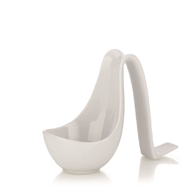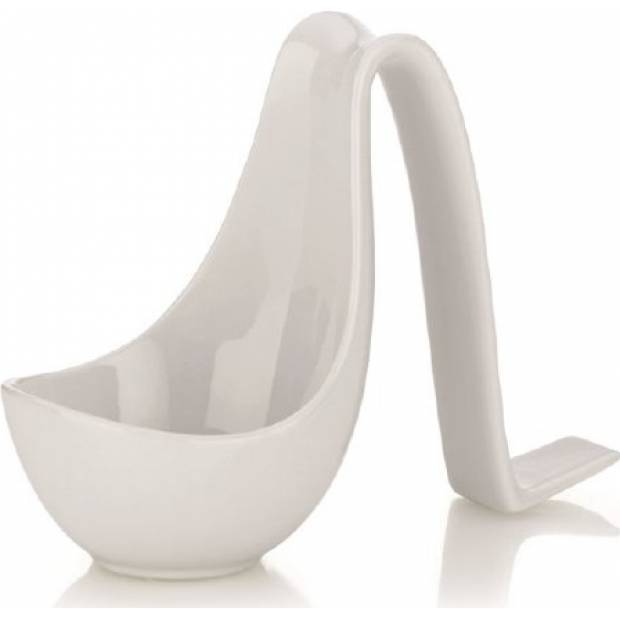 Elegantní stojánek určený k odložení vařečky během přípravy pokrmů. Stojánek je vyrobený z bílého porcelánu.