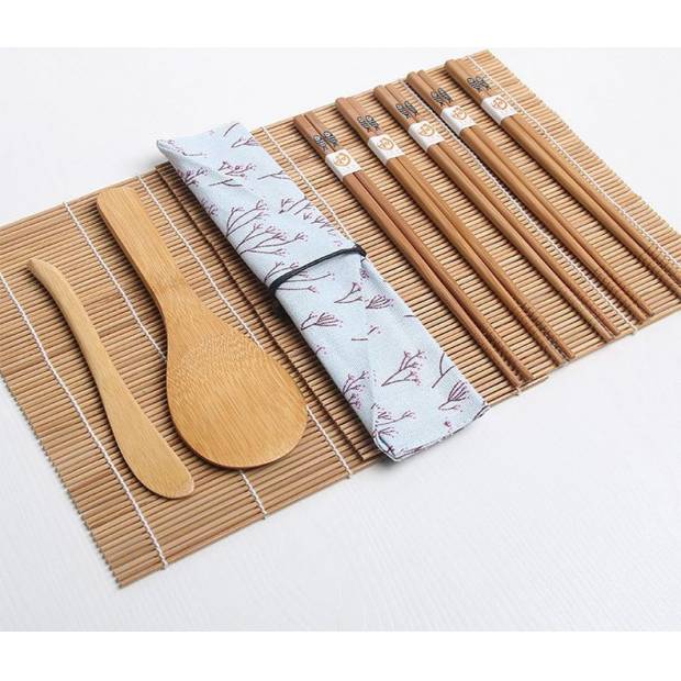 Set na sushi v přírodním provedení. Obsahuje vše, co potřebujete, abyste si společně vychutnali asijské jídlo. Tento sushi set je skvělou dekorací na každý stůl. Tato sada je skvělým návrhem pro každého, kdo chce do svého domova vnést trochu asijské atmosféry. Originální pokrmy, zdobené v harmonické japonské estetice, jistě dodají lesk každému jídlu. Díky nim se i obyčejná večeře může stát jedinečnou. Praktické dárkové balení je vhodné i jako svatební dar či dar ke kolaudaci nového bytu, apod.