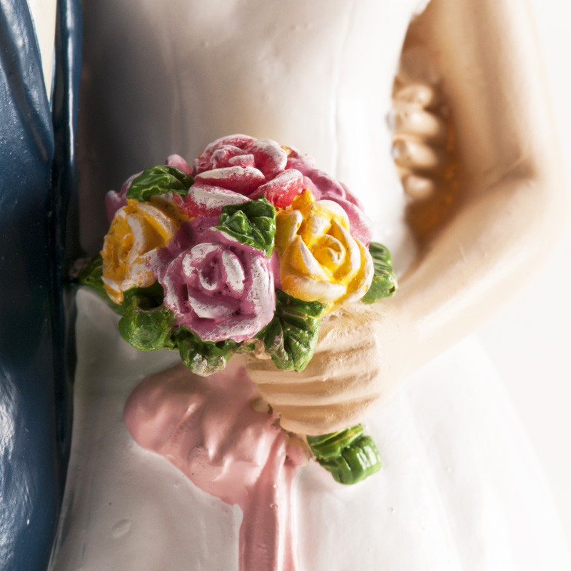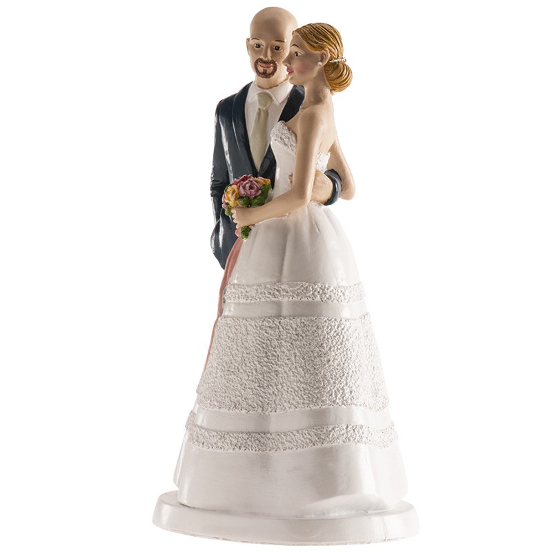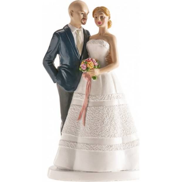 Svatba je jedním z nejdůležitějších dnů v životě. Proto se ujišťujeme, že se vše dělá až do posledního detailu. Zdrojem mnoha dilemat může být svatební dort. Po výběru oblíbených příchutí je čas rozhodnout o vizuálních aspektech. Dekorace dortu mu dodá velmi individuální charakter. S množstvím umístěných figurek to však nepřehánějte, aby výsledný efekt nepůsobil kýčovitým dojmem. Tato nejedlá dekorace představuje novomanžele. Vyrobena je z polyresinu a upevněná na podstavci. Díky tomu bude na dortu lépe držet.