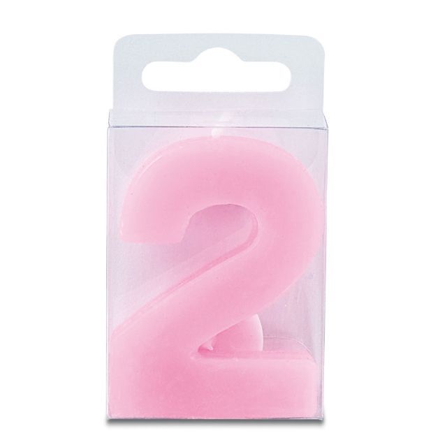 Svíčka ve tvaru číslice 2, růžová barva, výška 4 cm. Je vhodná především pro zdobení narozeninového dortu a podobných moučníků. Svíčka splňuje všechny bezpečnostní předpisy.