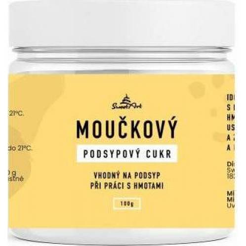 Podsypový moučkový cukr s obsahem kukuřičného škrobu je ideální pro podsypání při práci s potahovacími a modelovacími hmotami. Zabraňuje lepivosti hmot, usnadňuje jejich tvarování a manipulaci, a zároveň zajišťuje hladký a rovnoměrný povrch hotových výrobků. Složení: 97% cukr, 3% kukuřičný škrobNutriční hodnoty ve 100 g: energie 1680 kJ/398,8 kcal, tuky 0 g (z toho nasycené 0 g), sacharidy 99,7 g (z toho cukry 97 g), bílkoviny 0 g, sůl 0 g