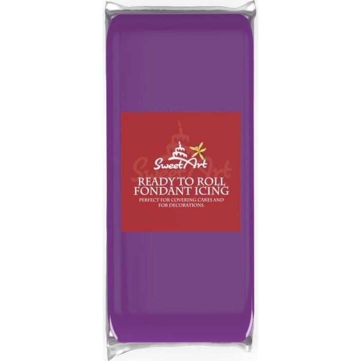Fialová cukrová hmota s vanilkovou příchutí na potahování dortů a výrobu cukrových figurek.