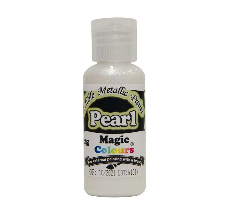 Jedlé metalické barvy jsou jedlé metalické potravinářské barvy, vhodné pro malování cukrových dekorací, čokolády, marcipánu atd. Jsou rychle schnoucí a snadno se čistí jen horkou vodou nebo alkoholem. K dosažení různých výsledků použijte různé typy štětců - od zakrytí dortu tenkou barevnou vrstvou až po malování kreativně podle vaší fantazie. Je určen pro lakování, nehněte se do hmoty. Pozor: první vrstvu udělejte tenkou, po zaschnutí přidejte druhou, případně i třetí vrstvu. K aplikaci použijte velký štetec nebo houbičku. Balení 32 g.