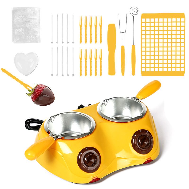 Temperovací přístroj na čokoládu žlutý včetně forem a příslušenství
