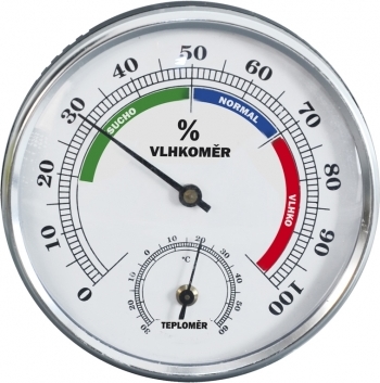 Kromě stupnice od - 30 °C do 60 °C má také vlhkoměr neboli hygrometr od 0 do 100 %. Teploměr umístěte tak, aby nebyl vystaven přímému slunečnímu záření, došlo by ke zkreslení hodnot.