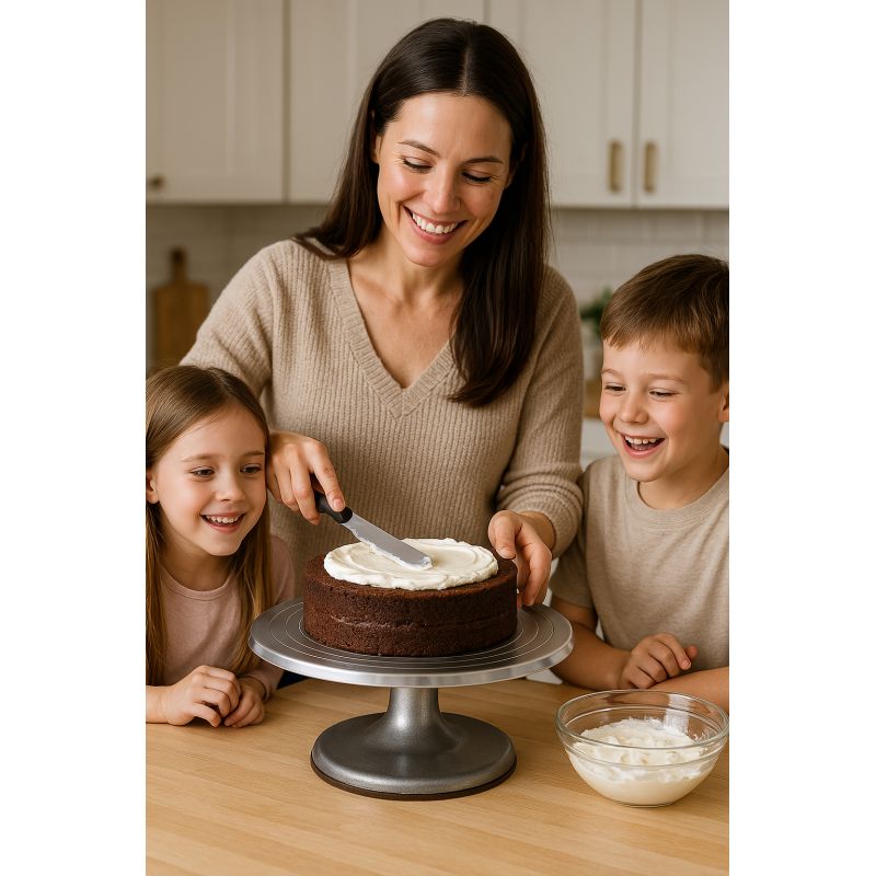 Plynulé otáčení - Točna nabízí plynulé a rovnoměrné otáčení, takže dort můžete dekorovat v jednom tahu bez zadrhávání. Výsledkem je dokonale hladký povrch a precizní detaily.