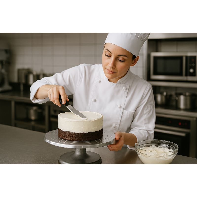 Zkraťte dobu výroby ve své pekárně nebo cukrárně rychlým zdobením dortů pomocí tohoto otočného stojanu. Ergonomický otočný mechanismus vám umožní roztočit dort, abyste měli přístup ke všem stranám a úhlům pro snazší tvorbu polevy a zdobení.