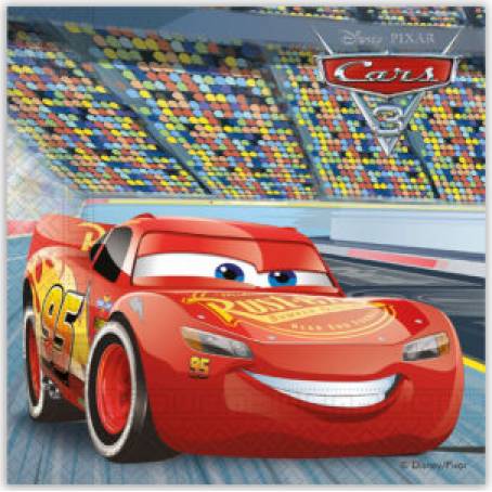 Papírové ubrousky s motivem Cars. Rozměry 33 x 33 cm.