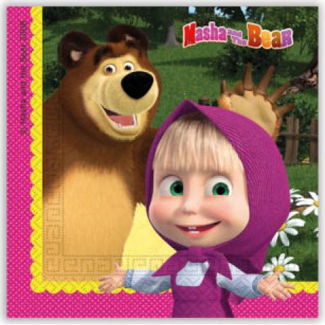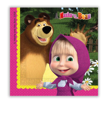 Papírové ubrousky s motivem Máša a medvěd. Rozměry 33 x 33 cm.