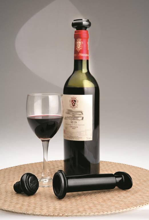 Vakuová pumpa na víno se 2 víčky, od značky Ibili. S návodem k použití umožňuje uchovávat láhve vína po jejich otevření déle. Výška pumpičky je 14 cm.