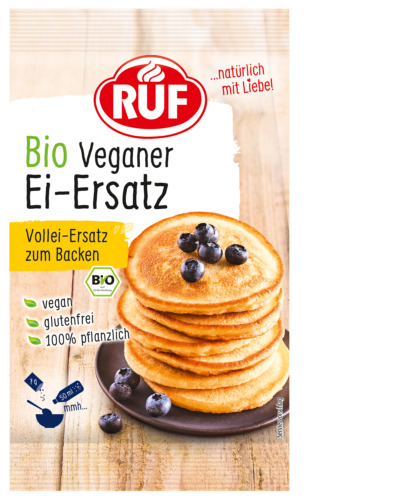 Ať už z dietních důvodů nemůžete jíst živočišné produkty nebo jste se prostě rozhodli pro veganství, vaše jídlo bude často vyžadovat náhražku vajec. Při pečení se vejce používají k vázání těsta. Bez nich koláče postrádají stabilitu a nemohou ztuhnout – někdy se úplně zhroutí. S naší veganskou náhražkou vajec si můžete ušetřit námahu se složitými přestavbami a přípravou a vyhnout se výrazné chuti z mnoha alternativ, která se vkrádá do vašeho pečiva. Naše veganská alternativa se neuvěřitelně snadno používá: pro každé vejce jednoduše smíchejte vrchovatou lžičku náhražky vajec s 50 ml perlivé vody a použijte ji k přípravě a pečení těsta jako obvykle. Jedno balení RUF organické veganské náhražky vajec je ekvivalentem čtyř celých vajec. Prášek z náhražky vajec není jen veganský a bez lepku – je také 100% rostlinný, bez sladkých vlčích bobů.