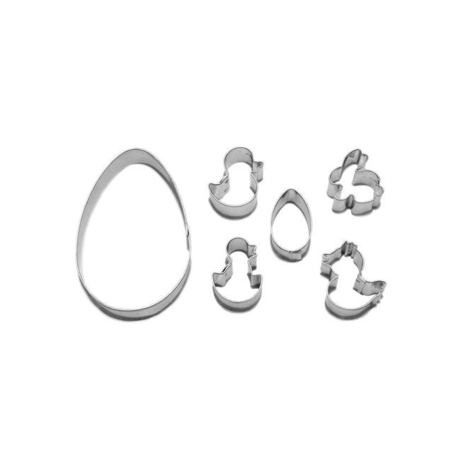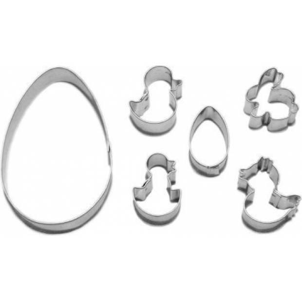 Velké a malé vajíčko, zajíčka, slepičku, kuřátko a kačenku v různých velikostech snadno vytvoříte z perníkového, lineckého a dalších druhů těsta s touto sadou praktických vykrajovátek. Kvalitní pocínovaný a zdravotně nezávadný plech, z kterého jsou vyrobena, se velmi snadno umývá.