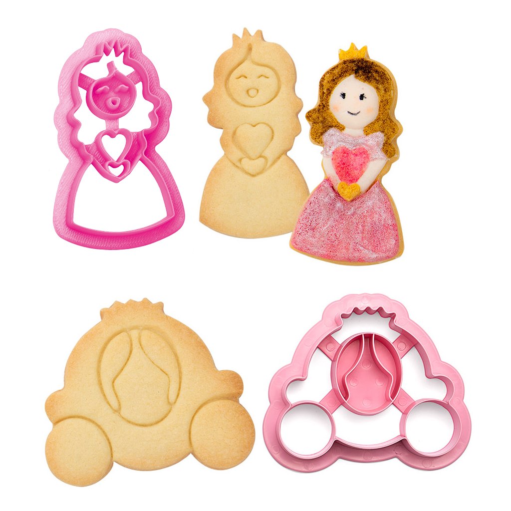 Použijte vykrajovátko v podobě princezny a kočáru a vytvořte lahodné a voňavé tvary cukroví nebo cukrových past na dorty a sladkostí. Vykrajovátko je vyrobeno z odolného plastu, má dostatečně ostré hrany pro vykrojení těsta i marcipánu. V balení 2 ks.