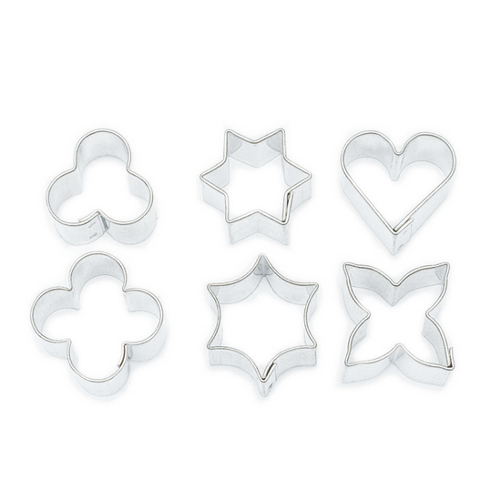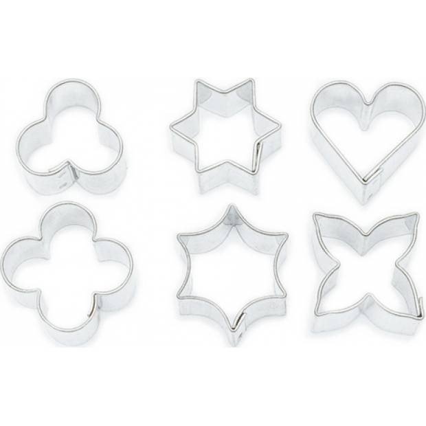 Sada šesti malých vykrajovaček o rozměrech od 20 do 23 mm, z plátu těsta vytvoříte pouhým přitlačením drobné kousky k zakousnutí nebo ozdobné tvary, které využijí zejména cukráři. Vykrajovátka poslouží ke zpracování těsta, perníku, fondánu, marcipánu i dalších hmot, drobné tvary mohou být použity i při výrobě cukroví ke kávě nebo čaji či drobných pamlsků pro naše nejmenší. Vyrobeny jsou ze zdravotně nezávadného pocínovaného plechu a jsou dostatečně pevné, takže při práci s nimi nedojde k deformaci tvaru.