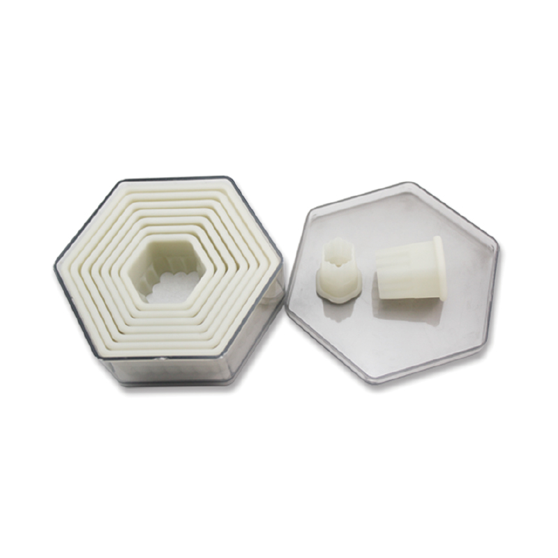 Vykrajovat šestihran nebylo nikdy jednodušší. Sada obsahuje 9 ks různě velkých šestihranů. Vykrojené šestihrany můžete libovolně skládat, tvarovat. Vhodné na marcipán, potahovací hmotu, fondant a další cukrářské výrobky.