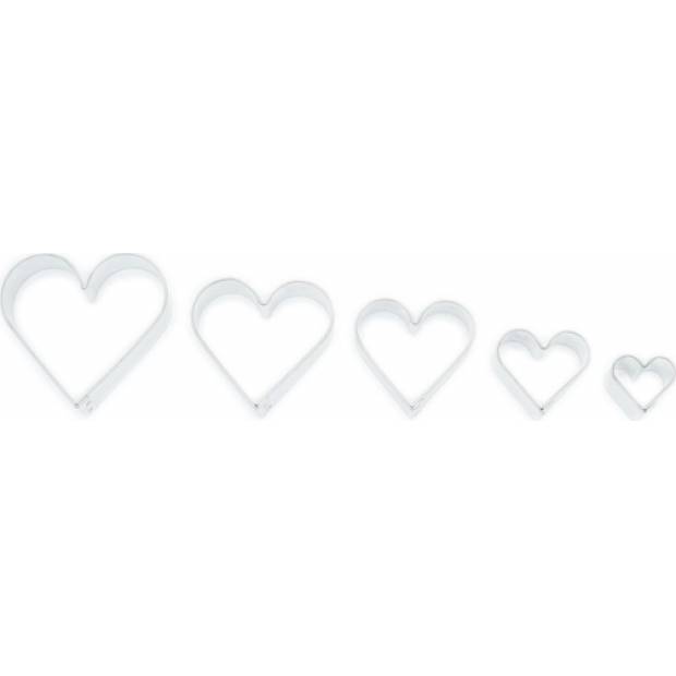 Sada pěti vykrajovátek v klasickém tvaru srdce různých rozměrů.