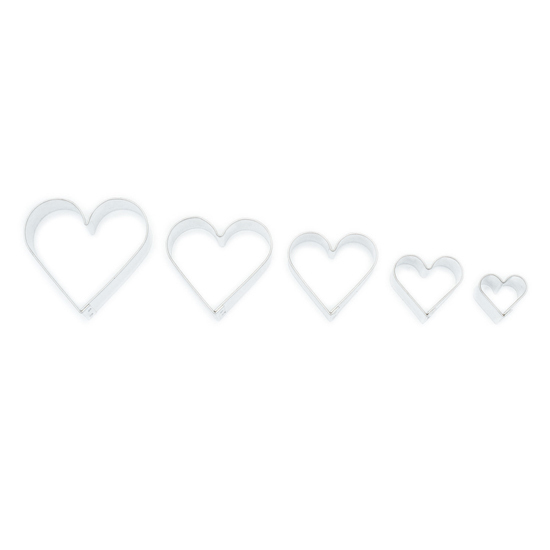 Vykrajovátka ve tvaru srdce s pěti různými rozměry (od 2 do 5,4 cm) z pocínovaného zdravotně nezávadného plechu. Hladký povrch vykrajovátek se dobře umývá. Výška pásku je 16 mm.Srdíčka můžete po upečení slepovat, ale také podle své fantazie zdobit – a na to se vám jistě bude hodit třeba i některá z námi nabízených zdobících souprav.
