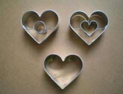 Srdíčka jsou vyrobena z pocínovaného plechu. Vykrajovátka jsou hladká. V sadě najdete tři vykrajovátka: srdíčko, srdíčko s kulatým středem a srdíčko se srdcovým středem. Set je vhodný na přípravu slepovaného cukroví.