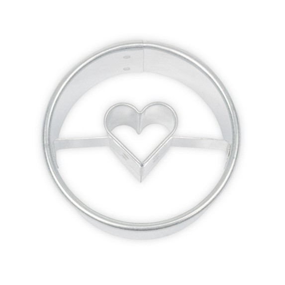 Vykrajovátko na cukroví ve tvaru kolečka průměrem 4 cm a srdíčkem uprostřed