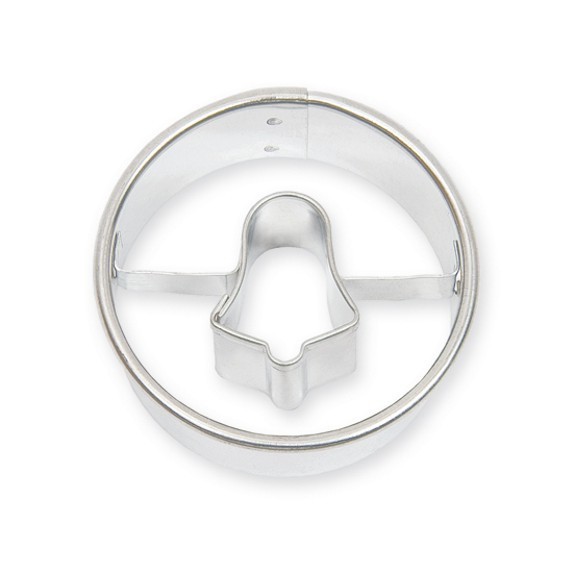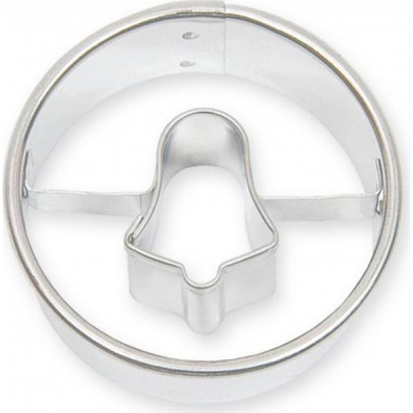 Vykrajovátko cukroví z různých druhů těsta v podobě kolečka s volným středem ve tvaru zvonečku. Na konečné ozdobení upečeného kolečka můžete použít různé cukrářské hmoty, krémy i jedlé zdobení, a také zdobící sady, které máme v nabídce samozřejmě také. Vykrajovátko je vyrobené ze zdravotně nezávadného pocínovaného plechu a velmi snadno se po použití umývá. Rozměry: průměr 4 cm / výška 1,6 cm