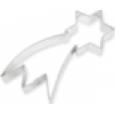 Plechové vykrajovátko na cukroví ve tvaru komety s rozměry 5,3 x 10 cm.