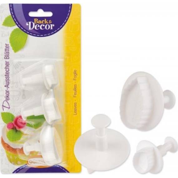 Vykrajovátko ve tvaru listu na fondant. Plastová vykrajovátka usnadní práci při tvorbě ozdob na dorty. Toto vykrajovátko je omyvatelné, v balení je 5 různých rozměrů. Můžete tak vytvářet menší či větší lístečky dle svého uvážení. Rozměry 105 x 57 x 220 mm / Cutter: 30 x 20 mm/ 35 x 24 mm / 45 x 30 mm.