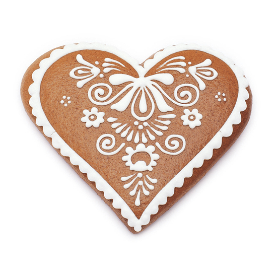 Vykrojené srdíčko přímo vybízí k něžném nazdobení, nemusí to být tak dokonalé a filigránské, jako perník na zde přiloženém obrázku, ten poslouží třeba jen jako předběžná inspirace. Pokud vyrobíte dostatek tvarů a dáte dětem materiál na zdobení, možná se budete divit, jaké kouzelné motivy dokáží vymyslet a sliny se budou jen sbíhat. Spojením pomocí sladkého krému nebo zavařeniny vytvoříme lahodné zákusky, které určitě přijdou každému k chuti. Výška motivu je 10, šířka 11 centimetrů. Materiálem je speciální pocínovaný plech, určený k výrobě kuchyňských potřeb.