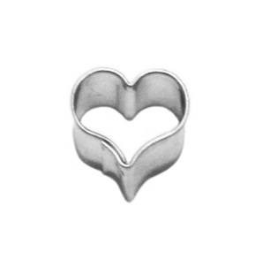 Hladké vykrajovátko ve tvaru prohnutého mini srdíčka z pocínovaného plechu.