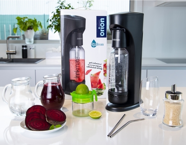 Výrobník DRINKMATE AQUADREAM v moderní černé barvě poskytne možnost domácí výroby perlivé vody, ale i snadno a rychle připraví luxusní ovocné, zeleninové i bylinkové limonády, vinné střiky, šumivá vína nebo long drink. Objem lahve je 1,1 l.