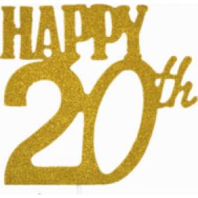 Nejedlá dekorace na dort, například k oslavě 20. narozenin či 20. výročí svatby. Zápich je ve zlaté barvě pro slavnostnější ráz.