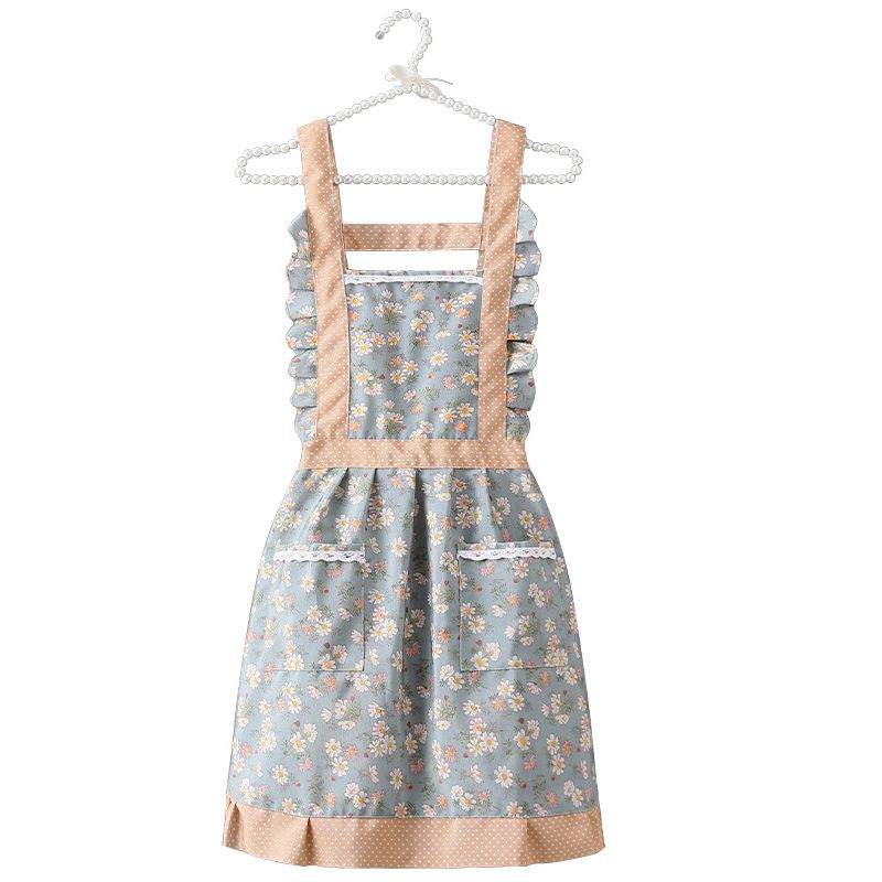 Zástěra kuchyňská zelená retro s kytičkama - Cakesicq