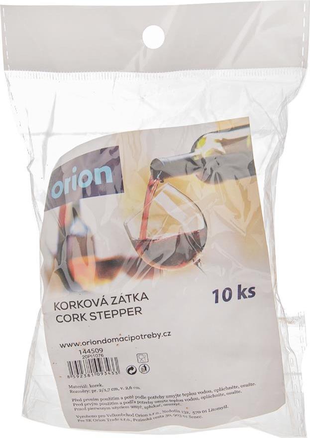 Zátka korková. 10 ks.Rozměry: pr. 2/1,7 cm, v. 2,6 cm.