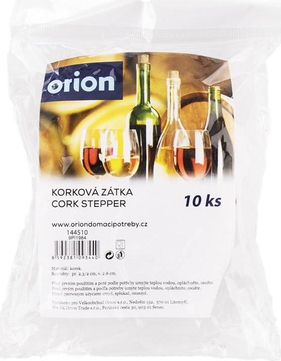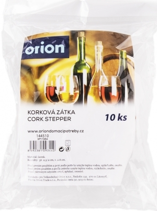 Zátka korková. 10 ks. Rozměry: pr. 2,3/2 cm, v. 2,6 cm.