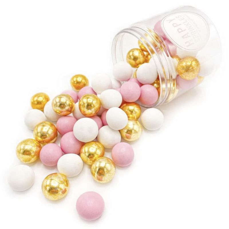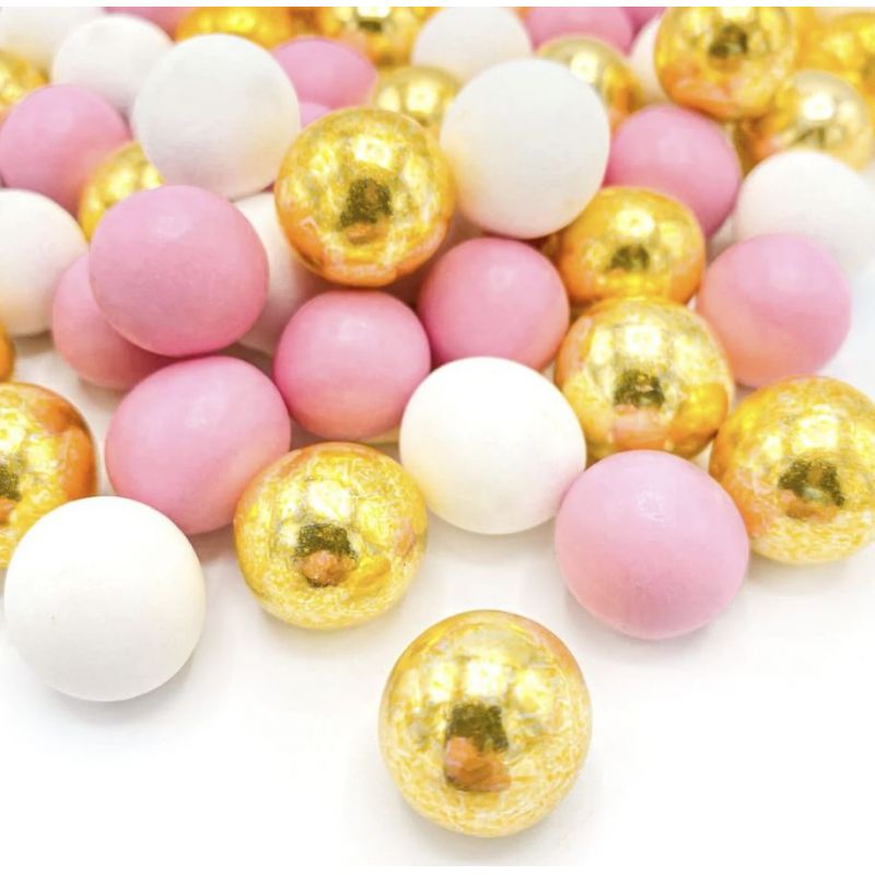 Lahodné kuličky v růžovém, bílém a metalickém zlatě vyzařují velmi zvláštní kouzlo a jsou ideální pro elegantní, slavnostní ozdobu dortů, cupcaků a mnoha dalších.