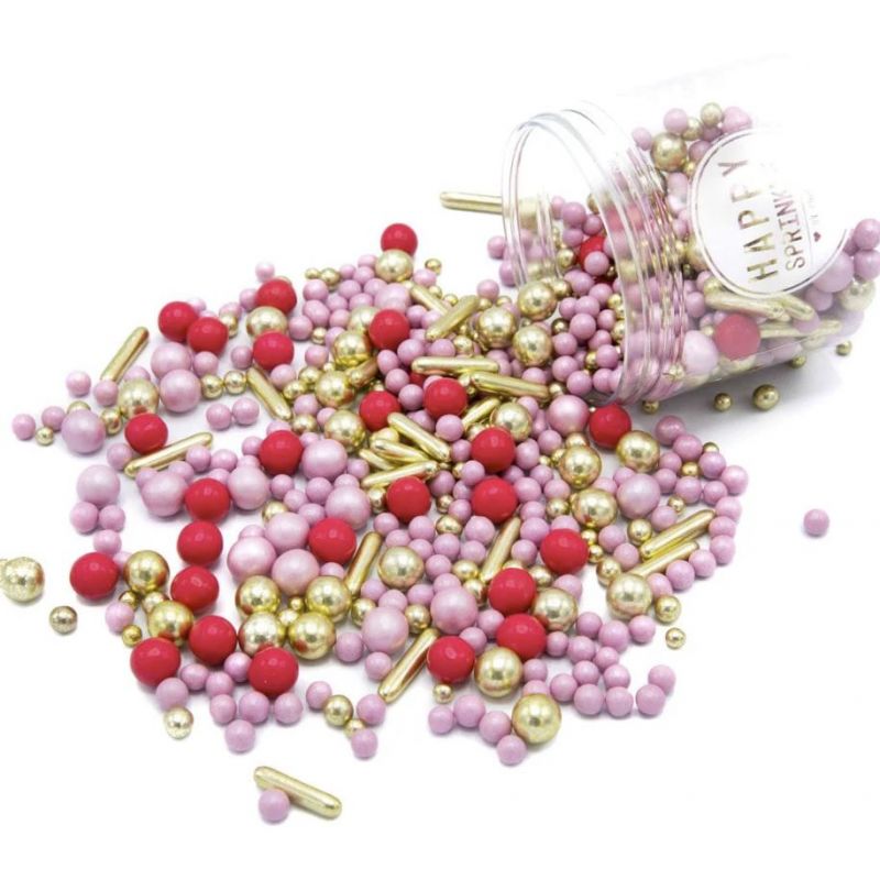 Girl Gang je opravdu krásná směs posypů ve zlaté, růžové a červené. V tomto mixu najdete mj. posyp tyčinkami a čokoládovými kuličkami. Ozdobte dorty a cupcaky touto úžasnou posypkou, která je ideální na Valentýna, ale i jen tak pro radost.