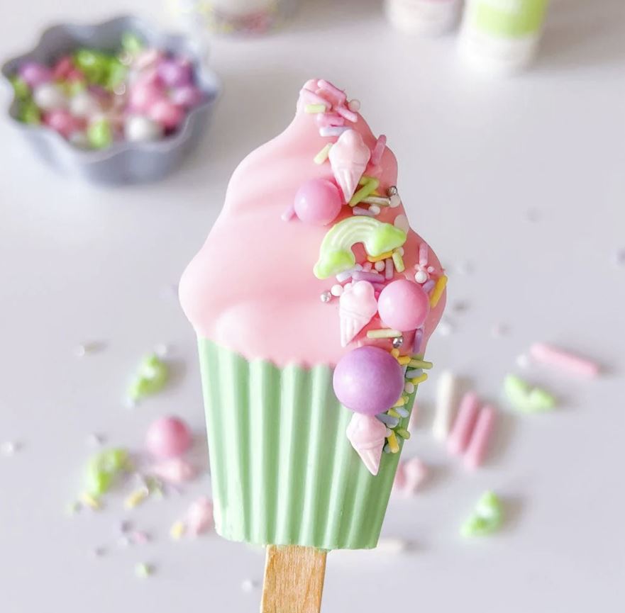 Perfektní posyp byl rychle na světě a barevná kombinace růžové, zelené, bílé a fialové se rychle stala oblíbenou. Základ pastelových tónů a stříbrných pramenů a perel dokonale ladí s malými duhami a kornouty zmrzliny, díky nimž je tato směs posypů tak zvláštní. Čokoládové perly a tyčinky dodávají perfektní nádech barvy. Naprosto ideální pro každý dort, cupcake, donut nebo cokoliv jiného, například další zmrzlinový pohár.