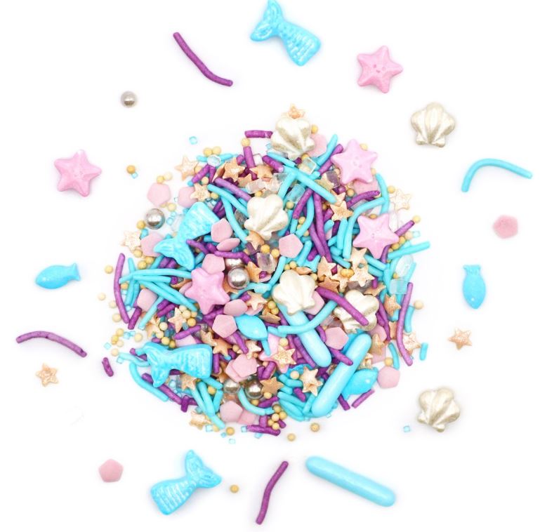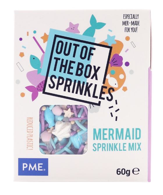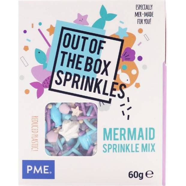 Ozdobte své dorty, cupcaky, donuty a další dobroty barevnými dekoracemi s motivem mořská víla PME Out of the Box. S tímto sypáním Out of the Box od PME můžete během několika minut udělat radost svým sportovním nadšencům. Použijte je na (dětskou) narozeninovou oslavu, baby shower, letní párty nebo jen tak pro zábavu. Vaše dobroty si zamiluje každý. Pomocí těchto posypů můžete ozdobit cupcaky, dorty, donuty, dortíky, zákusky, sušenky a další dobroty. Baleno v papírové krabičce.