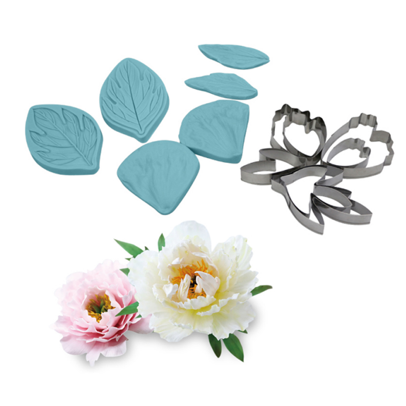 S pomocí tohoto žilkovače a vykrajovátek můžete vytvářet dokonalé pivoňky s květy a listy z marcipánu, fondánu nebo modelovací čokolády. Žilkovač a vykrajovátka jsou vyrobeny z kvalitního materiálu.